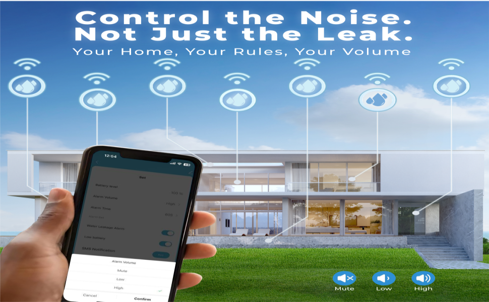 - π 80DB LOUD ALARM & INSTANT PHONE NOTIFICATIONS When a leak is detected, the built-in 80dB alarm sounds instantly, ensuring you hear it even from another room. Simultaneously, real-time alerts are sent directly to your phone, so you can act quickly no matter where you are. Easily silenced via the alarm app-no need to reach behind your washing machine . Adjust the volume in the app to your preferred level